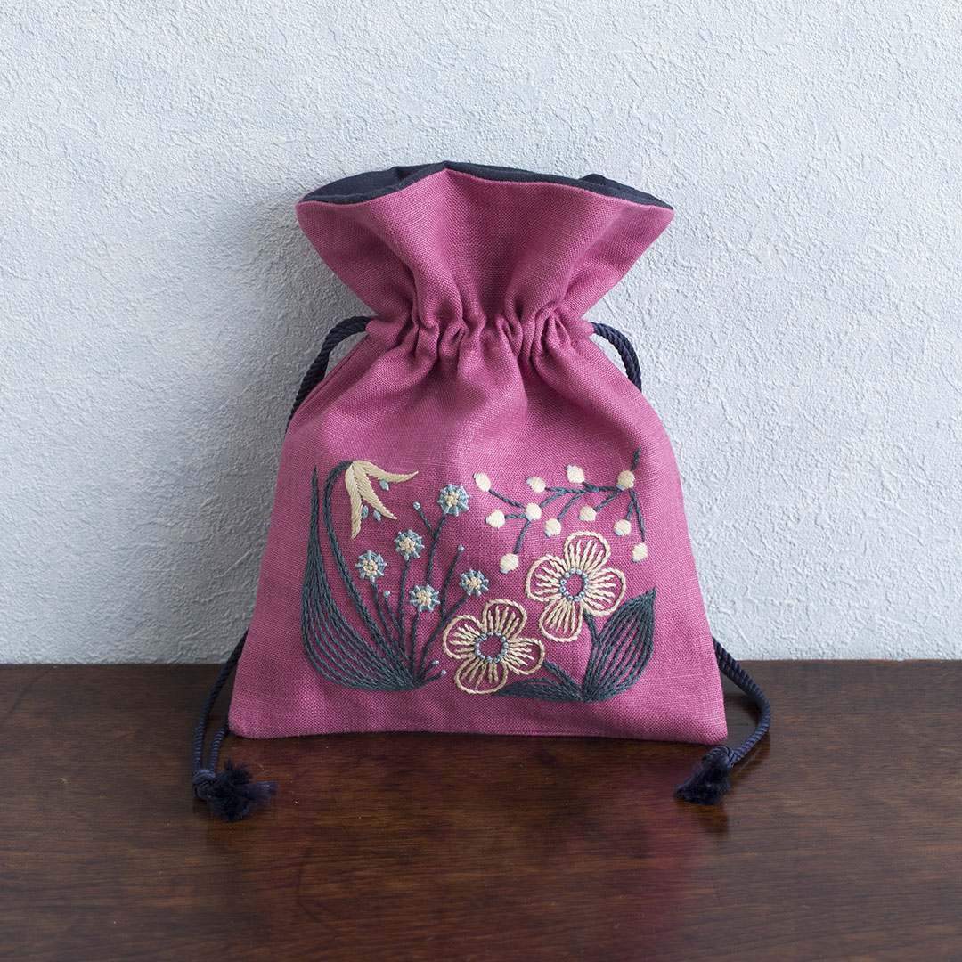 草花の葉や花びらのディテールに命を吹き込むように刺しゅうをします。光沢を抑えた自然な色合いの刺しゅう糸とリネン生地で、身近にそっと寄り添うような小物を作りましょう。