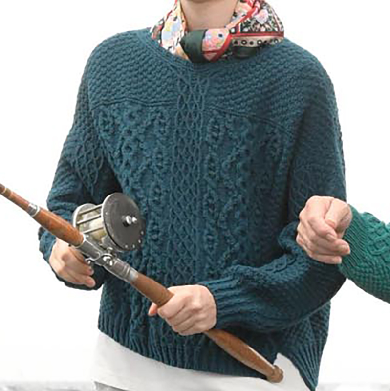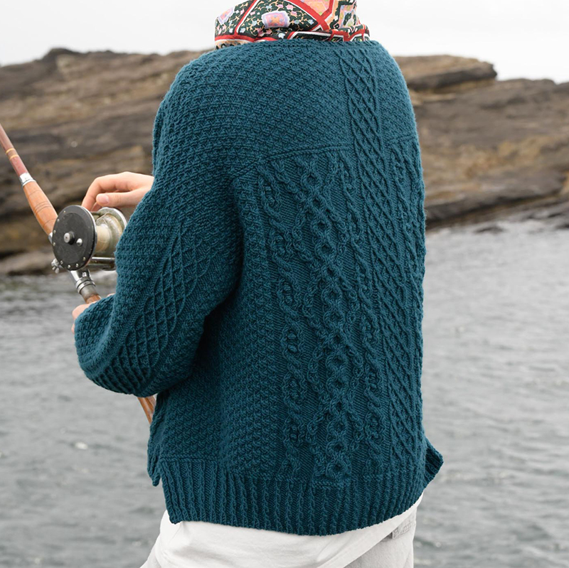 中央のトレリスをはさんで配したブラックベリーとダイヤモンド、複雑に組み合わさったケーブルに編み心を掴まれます。アシンメトリーな裾や、ネックの編み方などこだわりポイントも満載。