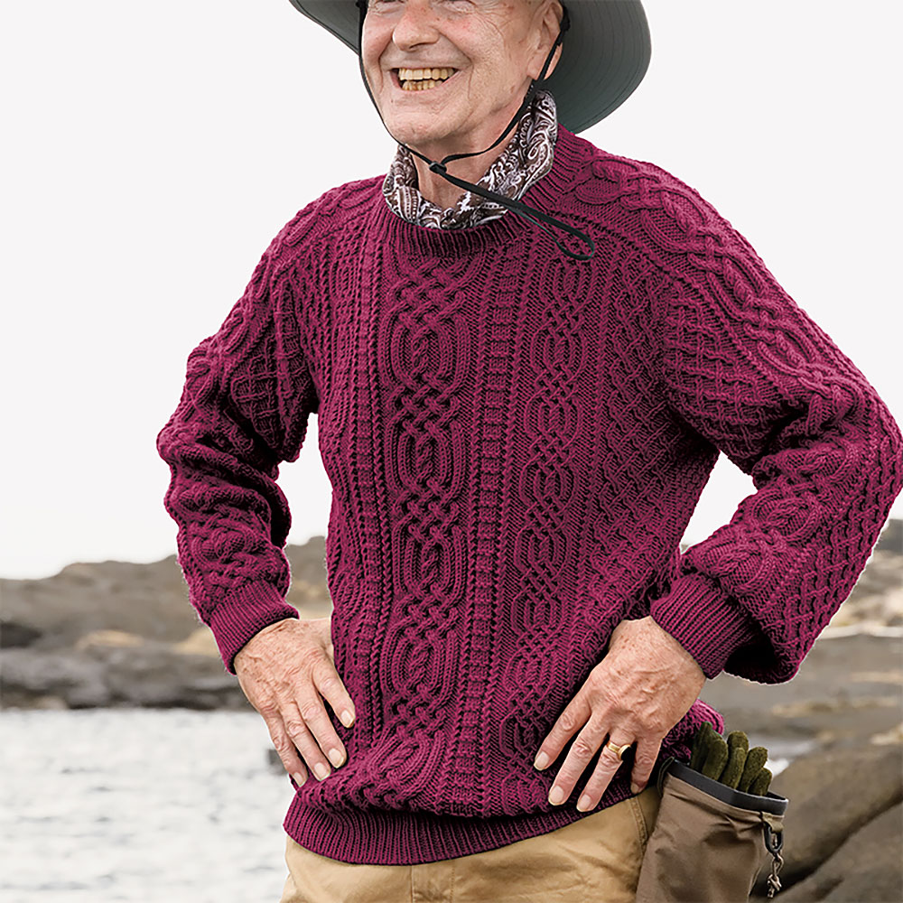 大小並ぶ凝ったバスケット模様は、エポーレットスリーブではさらに変化します。トレリスとラダーも合わせた、計算し尽くされたディテールは圧巻です。アランは組み合わせの模様が多いほど燃える!そんなアランラバーに贈ります。