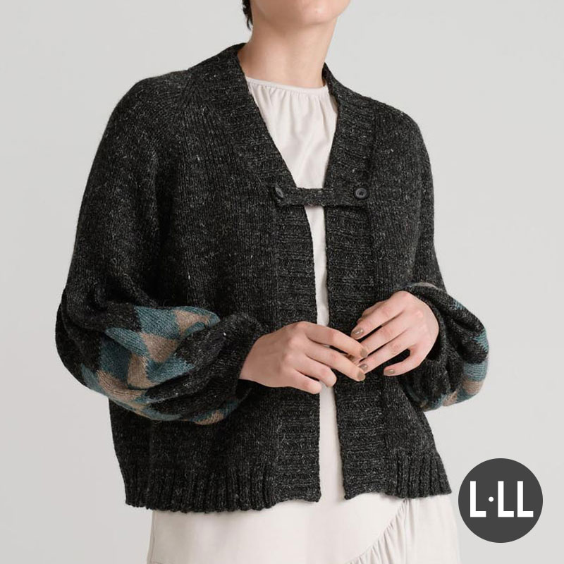 〈レシピ〉ボリュームスリーブのアーガイルカーデ[L・LL]