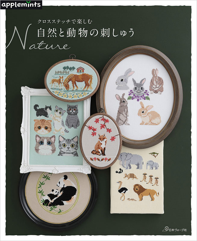 動物と自然をテーマにしたクロスステッチの図案集。ペットとしても親しみのある、犬、猫をはじめ、動物園や水族館でも人気の高い、パンダ、イルカのほか、牧場、ジャングル、野鳥をテーマに、すべて動物に関連したバラエティに富んだ図案展開。素材は、糸・布ともにDMCを使用。