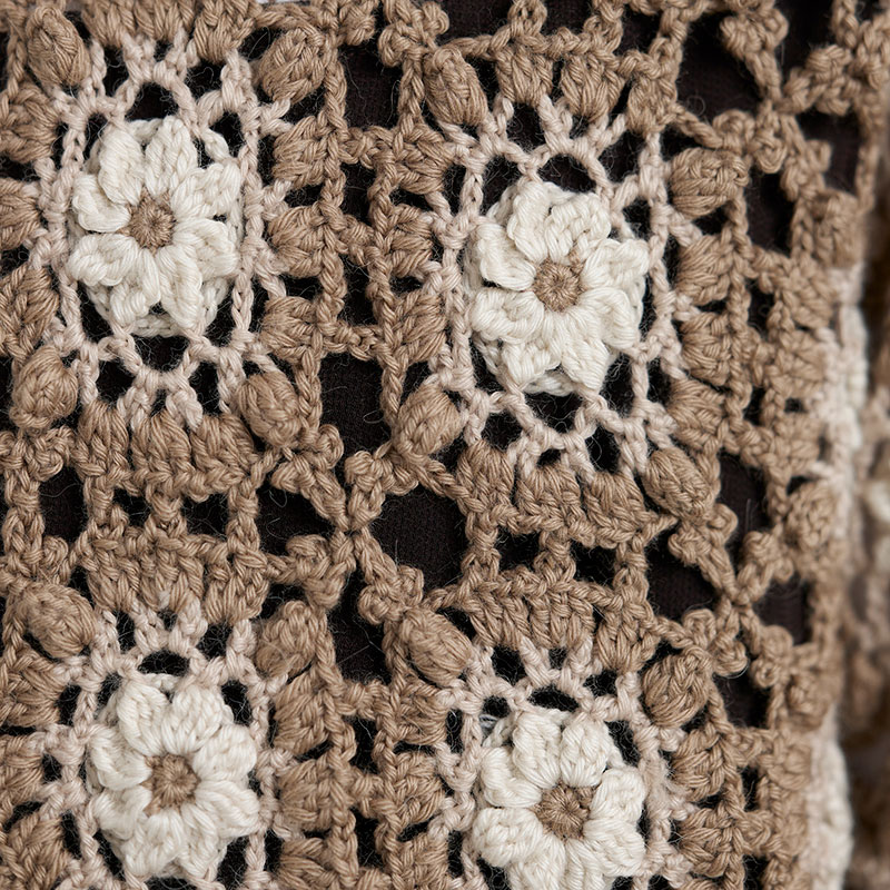 〈レシピ〉茶系のモチーフつなぎのカーディガン
