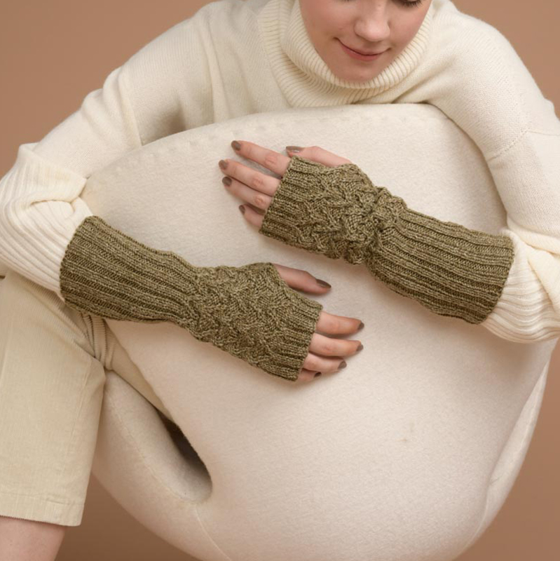 輪にして編み進み、親指部分は往復に編むだけ。夏のトレンドだったアームウォーマーは、この冬も大注目! ロング丈にしたり、ファーを添えたりと楽しくアレンジするのも良し。