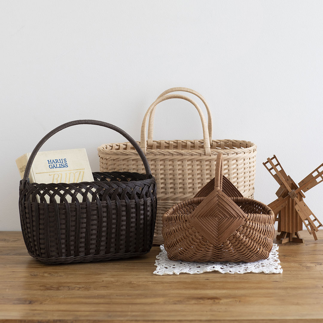 紙バンドで作る ラトビア風ワンハンドルのかご」「紙バンドで作る ラトビア風かごバッグ」「紙バンドで作る ラトビア風ゴッドアイのかご」