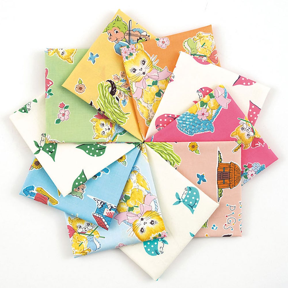 ネコや3匹の子ブタなど、ヴィンテージプリントを元にデザインした、レトロで懐かしい雰囲気のカットクロスセットです。