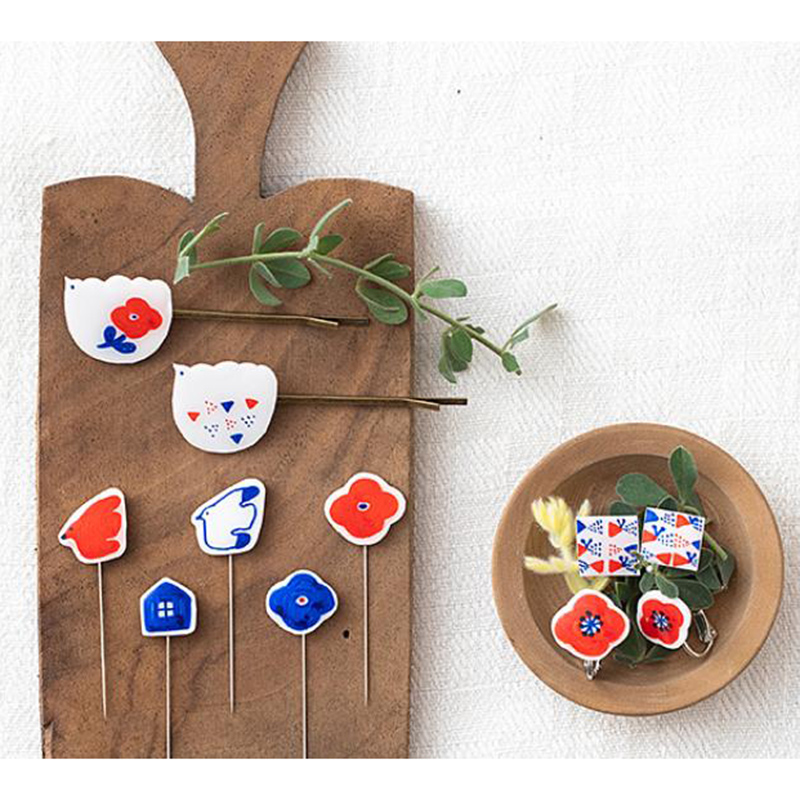 ※写真は花・蝶・鳥のアクセサリーと待ち針の材料です。