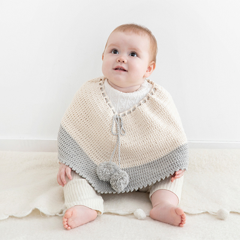 ツートンカラーの上品な配色とシンプルな編み地が、赤ちゃんのかわいらしさをより一層引き立てます