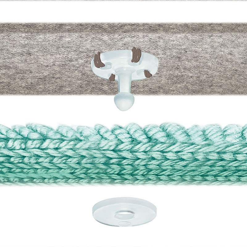ソフトピンの突起部が無理なく通る、ニット地などの素材にお使いください。