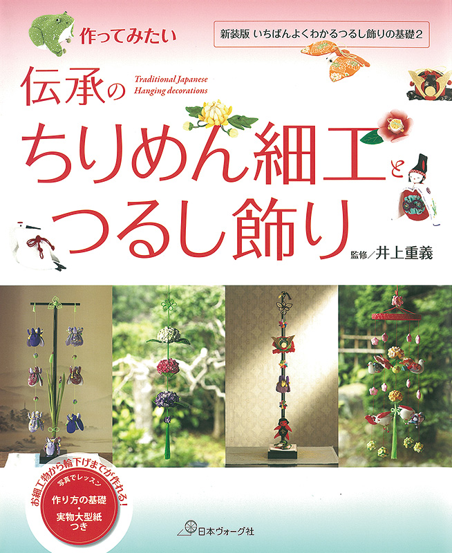 2014年に発行された「いちばんよくわかるつるし飾りの基礎2」の新装版。椿、桜、紫陽花、梅、蝶、菜の花、豆雛、かえる、つるなど人気のちりめん細工20種類の詳しい作り方を写真でレッスン。雛祭りの輪下げ、端午を祝う1連飾りなどつるし飾りも掲載。実物大型紙つき。