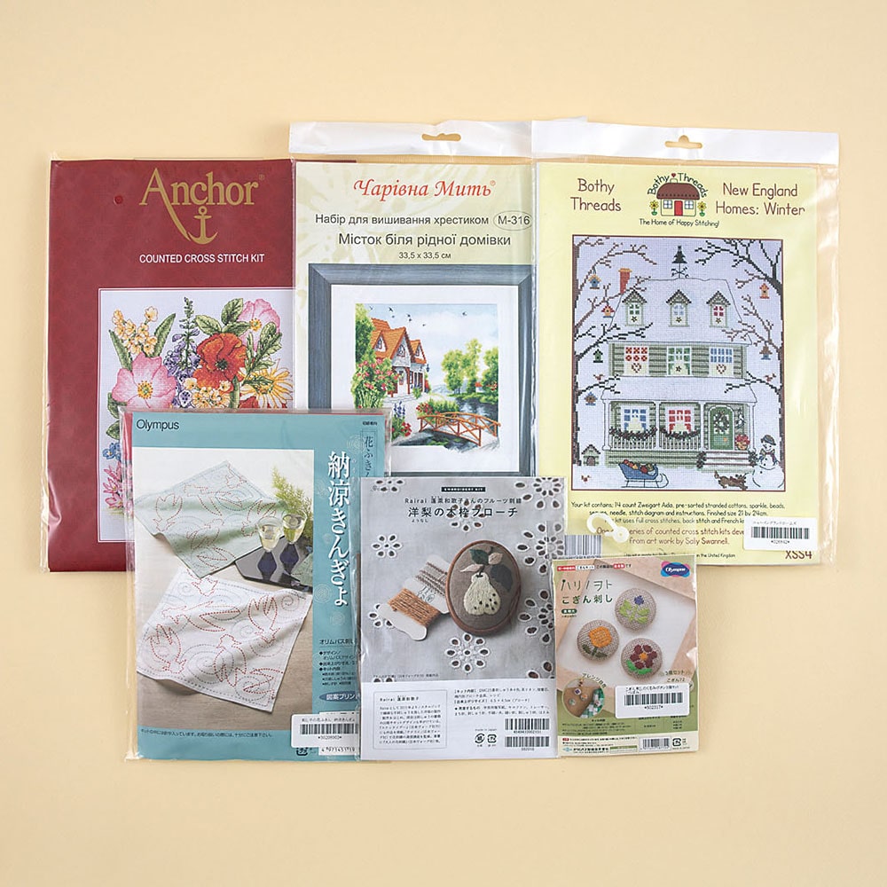 カタログに掲載された刺しゅうキット6点が入った、合計税込20,000円相当のお得なセットです。