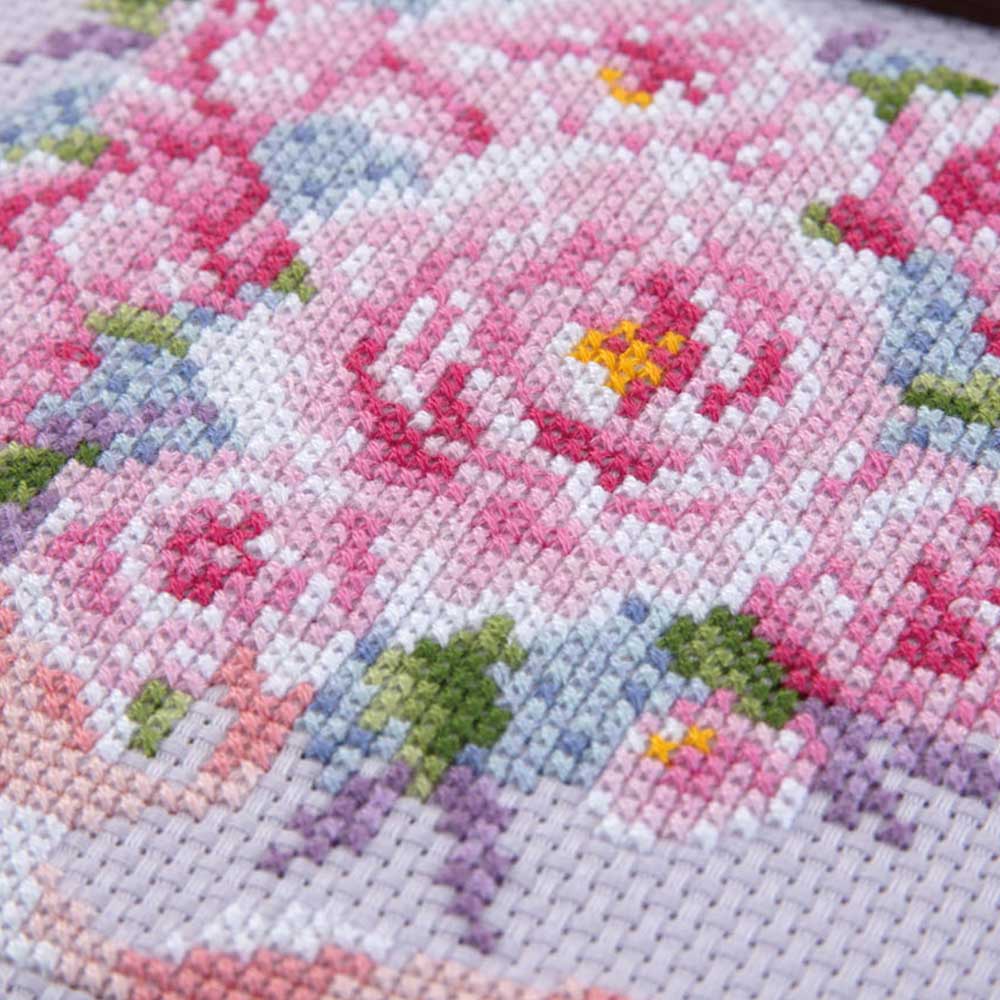 【キット作り方つき】【フレームつき】ピンクのグラデーションが美しいシャクヤクのブーケをクロスステッチで。お部屋を華やかに飾ってくれます。フレームつきなので、作ってすぐに飾ることができます。初~中級の方向き。