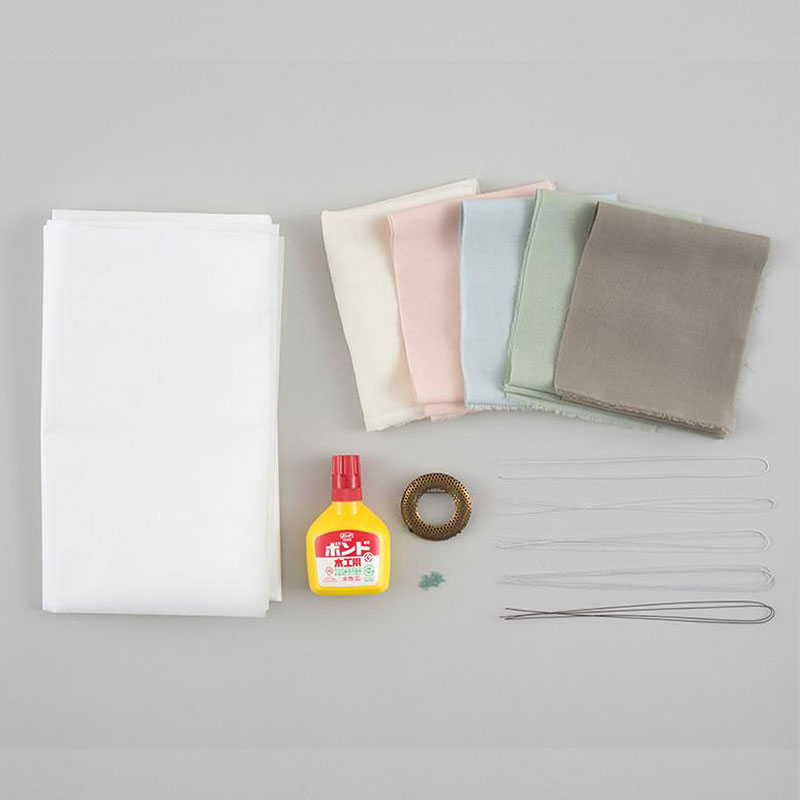 - はさみ、ニッパー、細目打ち、ペンチ、綿棒、ピンセット、手縫い針、手縫い糸(生成り)、アイロン、アイロン台