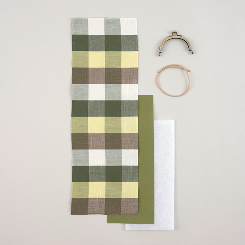 - 口金をはめる作業は、慣れないうちは難しく感じるかもしれませんが、一度コツを覚えてしまえば、面白くてたまらなくなるはずです。表布には、和服地の伊勢木綿。伊勢木綿の温かみのある素朴な柄を味わいながら、がまぐち作りを楽しんでください。