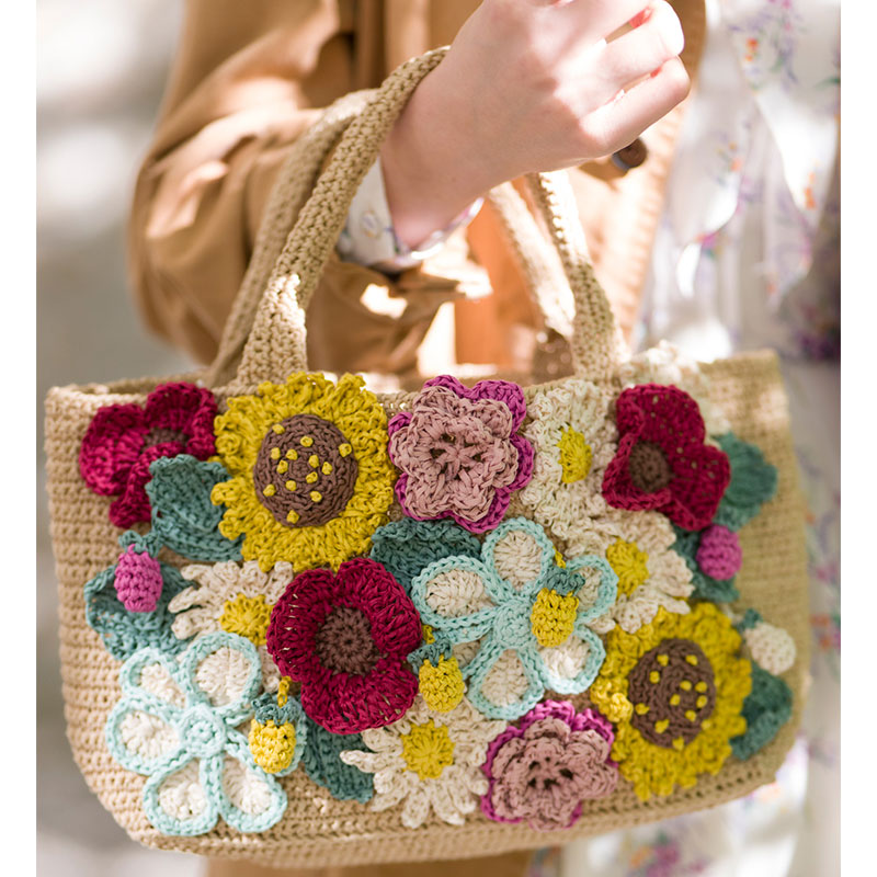 大好きな花々で思いきり飾ったカラフル小物とお出かけするのは、なんだか冒険に出かける気分! 新しい季節に新しいものを新調する喜びを夢見ながら、一輪、また一輪と花束を大きくするように花モチーフを編みためましょう。
