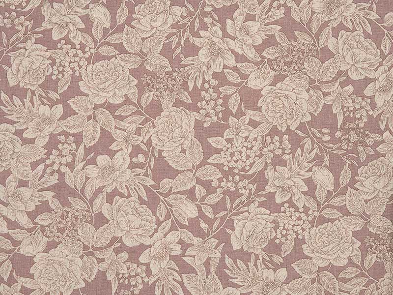 [綿麻キャンバス][広幅]スモーキーなピンク地に単色で花柄をプリント。広幅でやや厚手のキャンバス地は、インテリアにも ぴったりです。