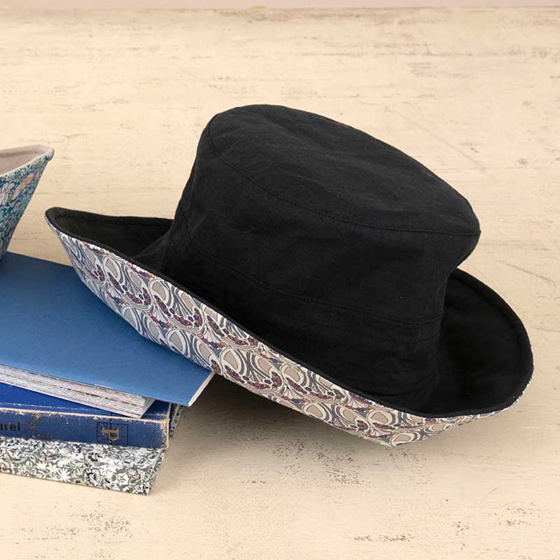 【限定40】【完成品】ベースはリネン、つば部分にリバティプリント生地を合わせた落ち着きあるハットです。ベースの色&つばの柄が異なる2種をご用意。上品でおしゃれな装いを演出してくれます。