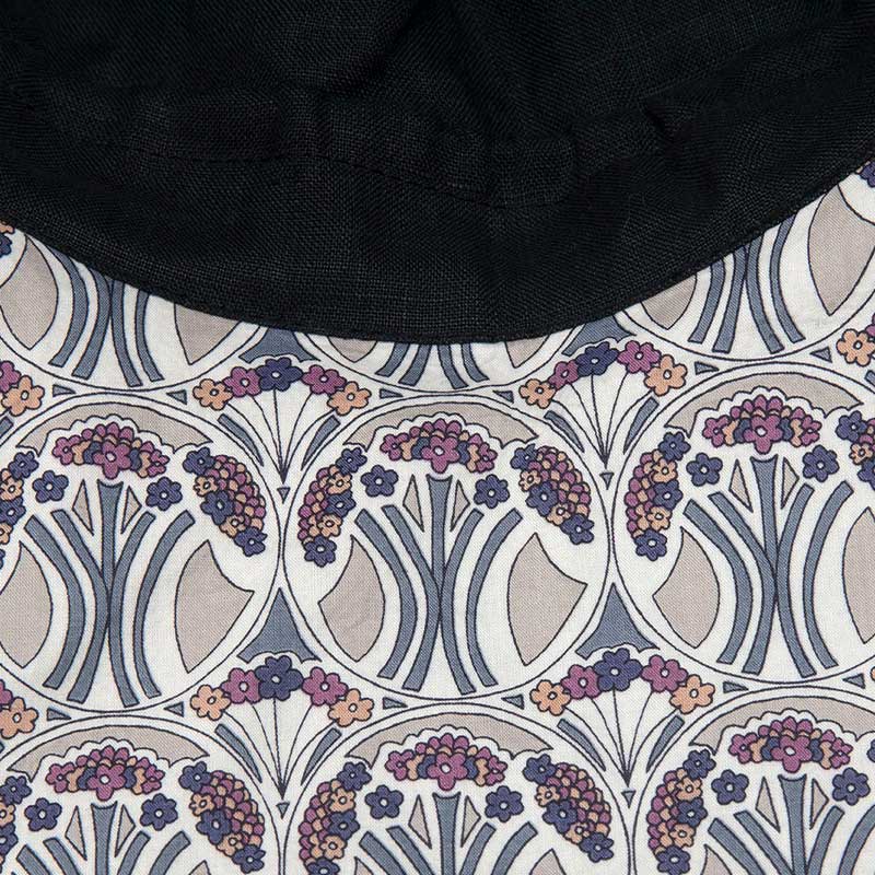 【限定40】【完成品】ベースはリネン、つば部分にリバティプリント生地を合わせた落ち着きあるハットです。ベースの色&つばの柄が異なる2種をご用意。上品でおしゃれな装いを演出してくれます。