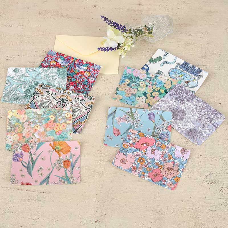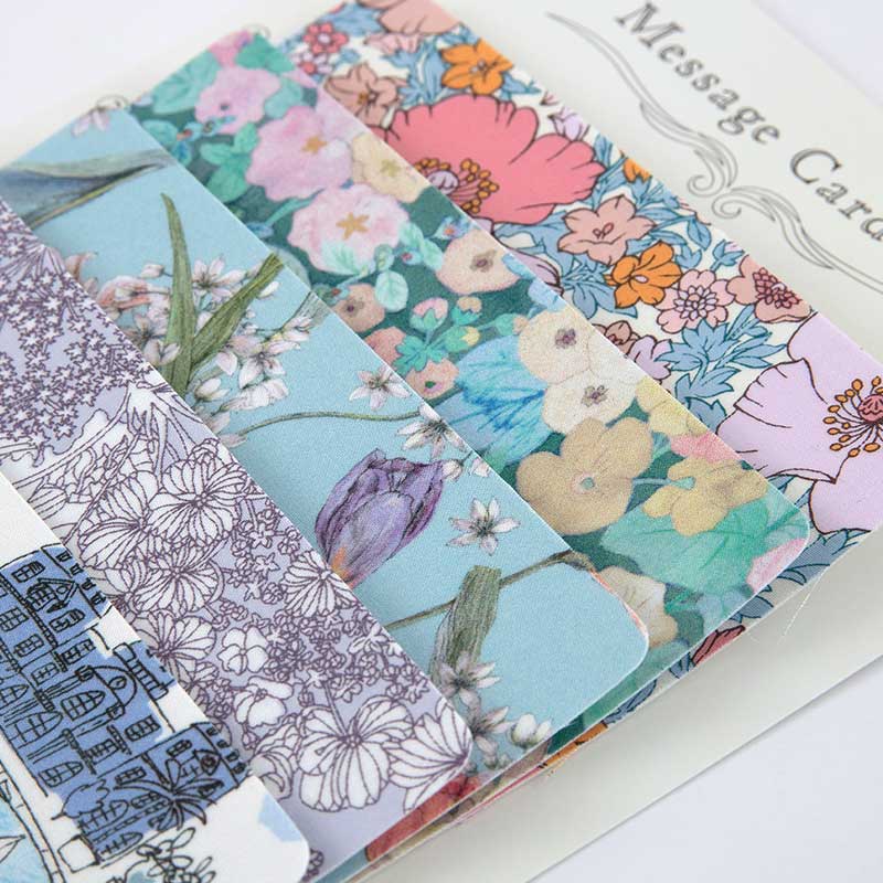 【限定40】【完成品】リバティプリントの布を貼った特別感のあるメッセージカードです。大切な方やお世話になったお礼に贈れば気持ちが伝わりそう。柄の異なるセットを2種ご用意しました。
