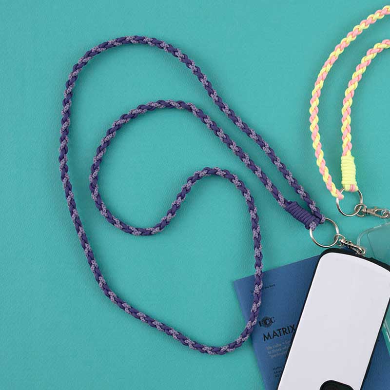 【キット作り方つき】丈夫なアウトドアコードで簡単に作れるストラップです。付属のクリアタグを、普段使っているスマートフォン&ケースの間に挟んでつけます。落ち着いた[パープル]と、暗い所でほんのり光る蓄光タイプの[グロウカラー]をご用意。