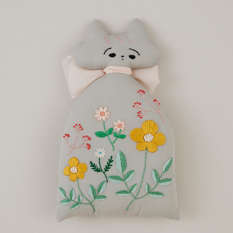 思わず、そっと手に取りたくなる小さなねこのオブジェ。グレー×ピンクの王道可愛い色の組み合わせの中に、黄色の大きなお花がよく映えます。どんな時にもやさしく心を癒してくれる、そんなねこのオブジェです。