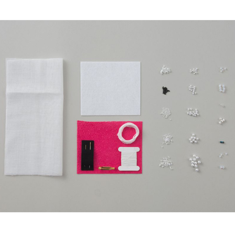 色々な質感のホワイトカラーのビーズを使用しています。パールやチェコビーズなど丸みのあるビーズを使用しているので、ムーミントロールの特徴である“丸くて白い体”を見事に表現しています。