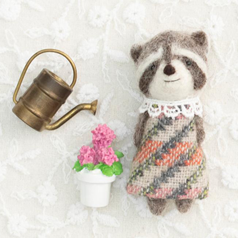 お気に入りのワンピースを着たアライグマ。お顔の模様を可愛らしく仕上げましょう。