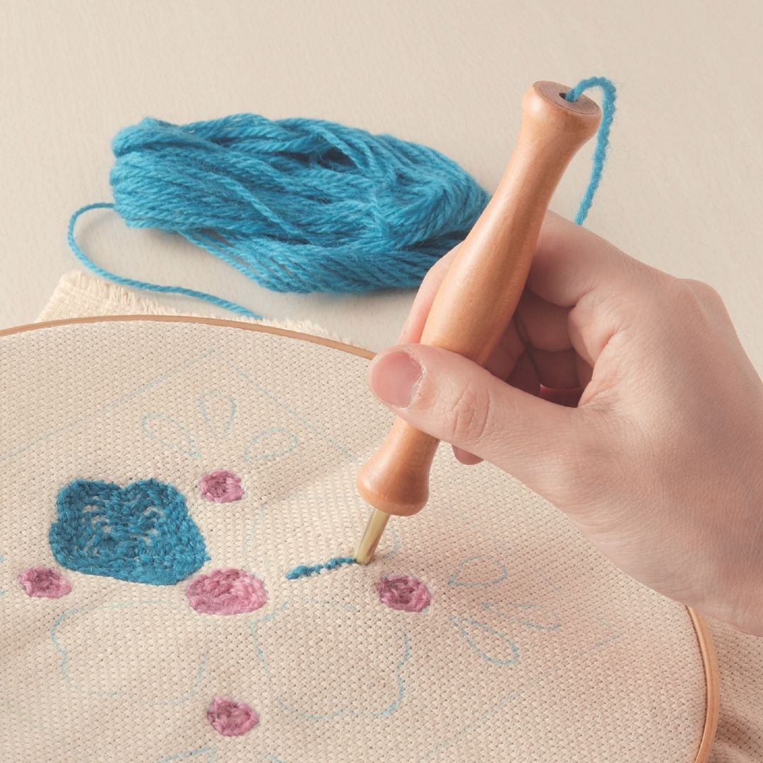 毛糸を通して布に刺すだけで、ふんわり立体的な刺繍が楽しめるパンチニードル。