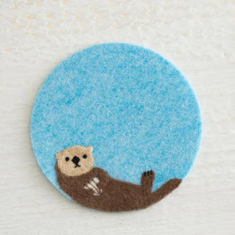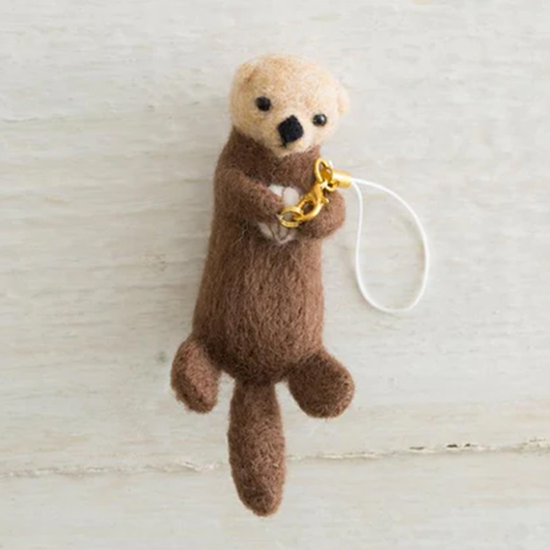 貝殻を抱えた愛らしいラッコのストラップ。ボディやパーツの形を型紙と比べながら作業できるので、初心者の方でも安心して作れます。