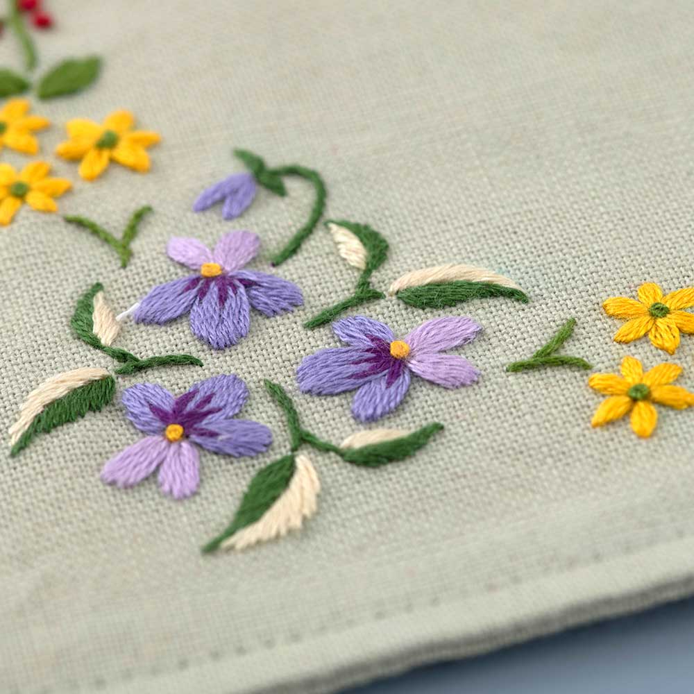 【キット作り方つき】 素敵な草花刺しゅうの、大人っぽい小物とアクセサリーシリーズより、可憐な小花をあしらったカフェマットです。図案が印刷済みなので、すぐに刺し始めることができます。