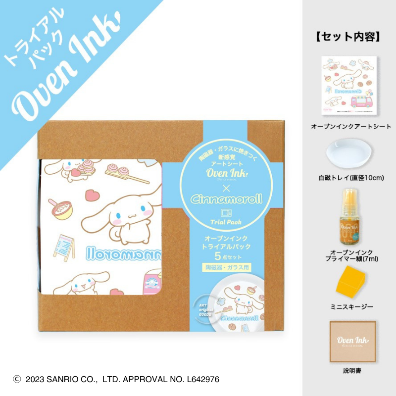 自分好みのデザインにカスタマイズした小皿がつくれるオーブンインクのトライアルキットにシナモロールが登場。