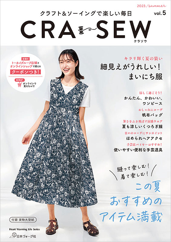 巻頭特集は「細見えがうれしい!まいにち服」。夏にかけておすすめのワンピース、ブラウス、パンツなどのアイテムを特集その他、「かんたん、かわいいワンピース」「夏を涼しく、くつろぎ服」「ほめられヘアアクセ」など、これからの季節にぴったりのアイテム盛りだくさん。実物大型紙2枚つき。