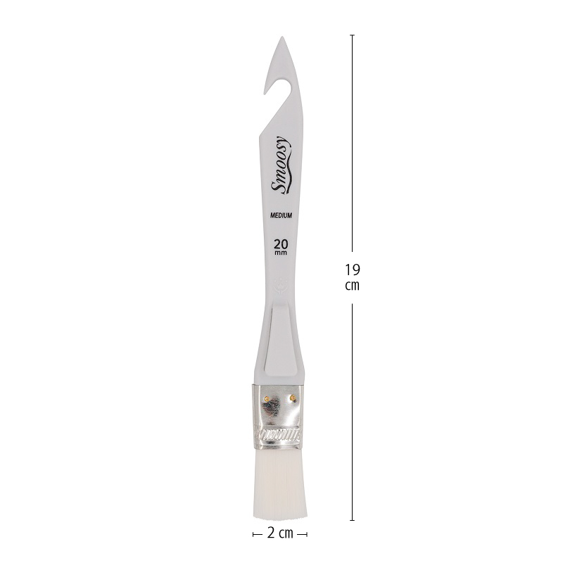 カルトナージュでグルーを塗るときに使用。化繊の毛なのでグルーが固まりにくく、コシがありグルーが塗りやすいです。フックがついているので容器に掛けておけます。