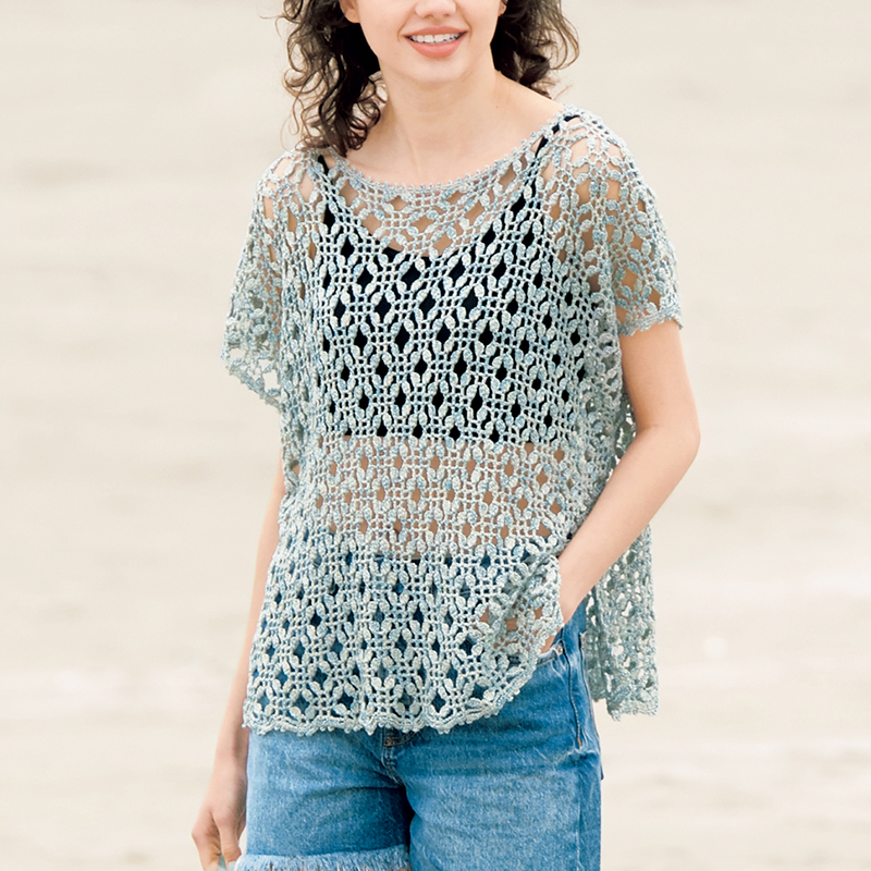 クロッシェ派にぜひおすすめしたい、ちょっと面白い模様編み。玉編みをそう使いますか!と思わずうならされます。ゆったりシルエットのプルオーバーは、カバーウエアにぴったり。いろんな着こなしを楽しんでみて。