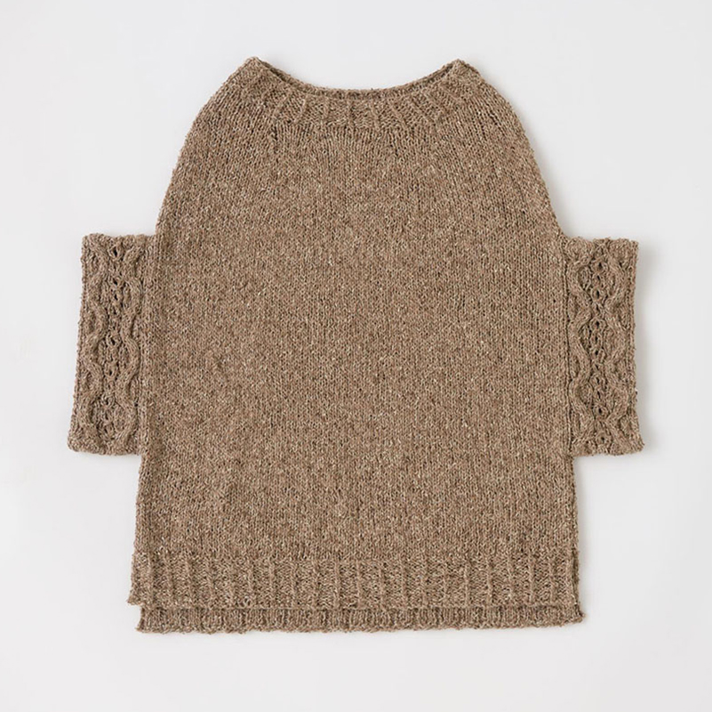 しっかりしたアラン模様の袖口つけることで個性的なデザインに。着たときに袖口がピンとはねた感じのシルエットになるのがチャーミングです。