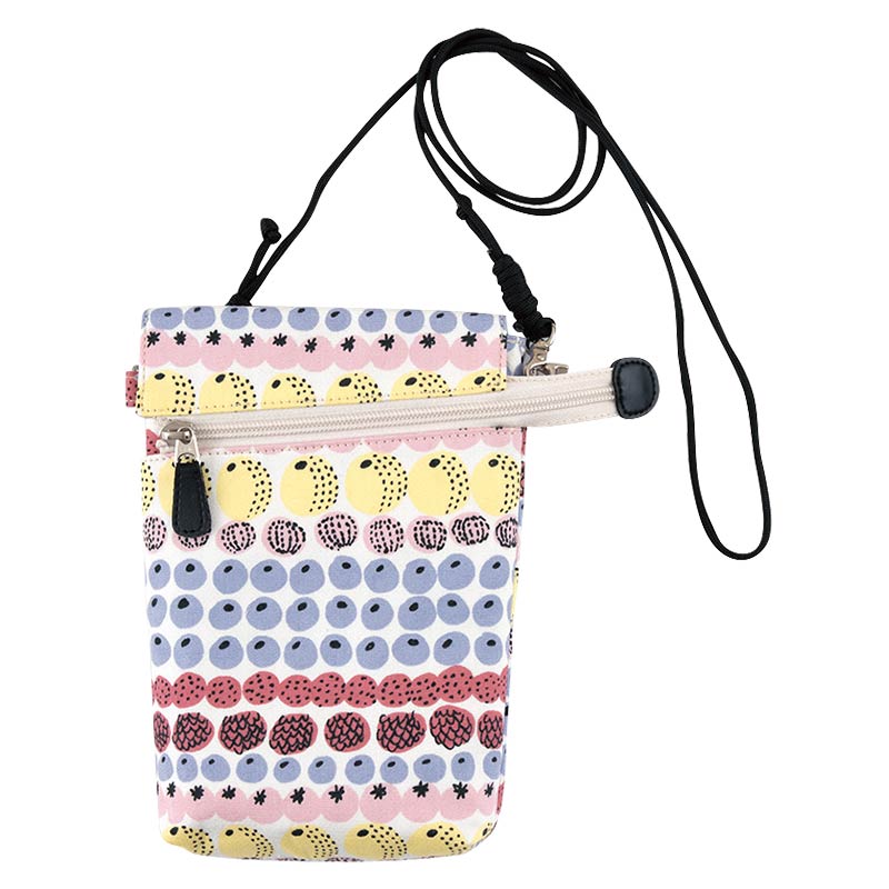 [オックス] やや厚手のオックス地に、北欧の人々の元気の元・ベリーを並べたボーダープリント布です。ニュアンスカラーを生かしたバッグやインテリアなどに。