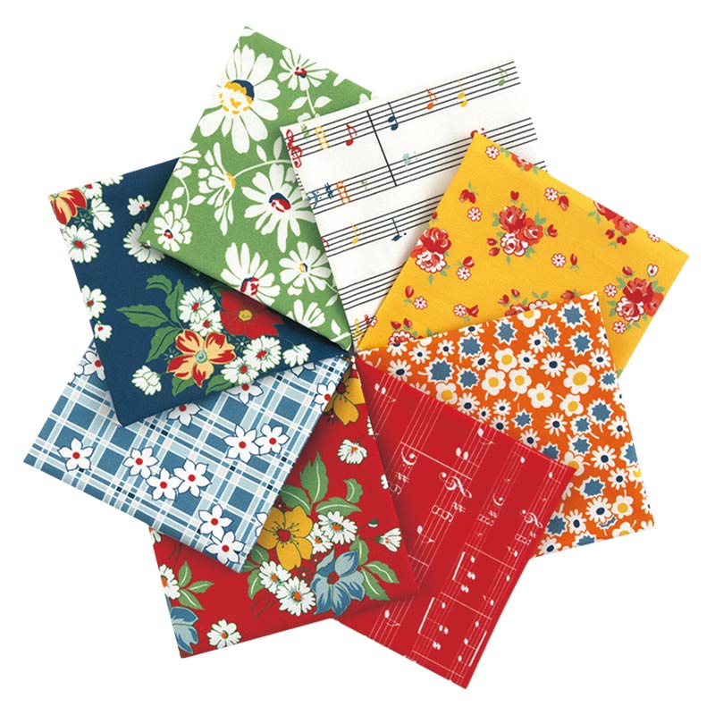 [USA] デイジーや遊び心のある小花に、カラフルな楽譜柄を組み合わせたカットクロスセット。ノスタルジックな色合いで、レトロポップな小物作りにお勧め。