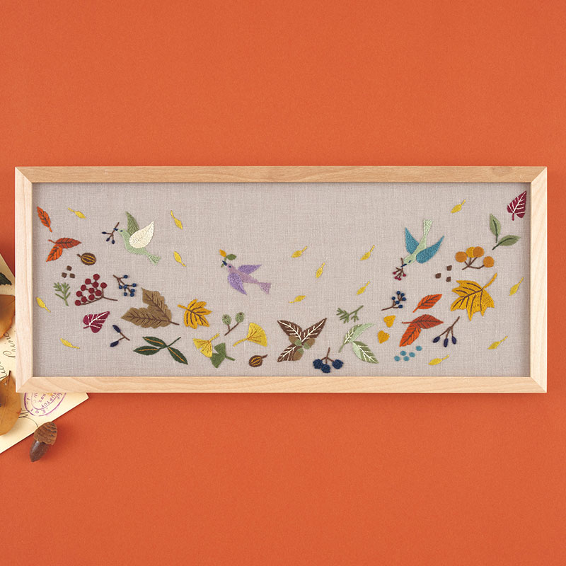 【キット作り方つき】人気作家・マカベアリスさんが、心に希望を灯す「光」をテーマにデザイン。日差しがゆっくりと傾く秋の趣を刺しゅうで表現しました。中~上級の方向きです。