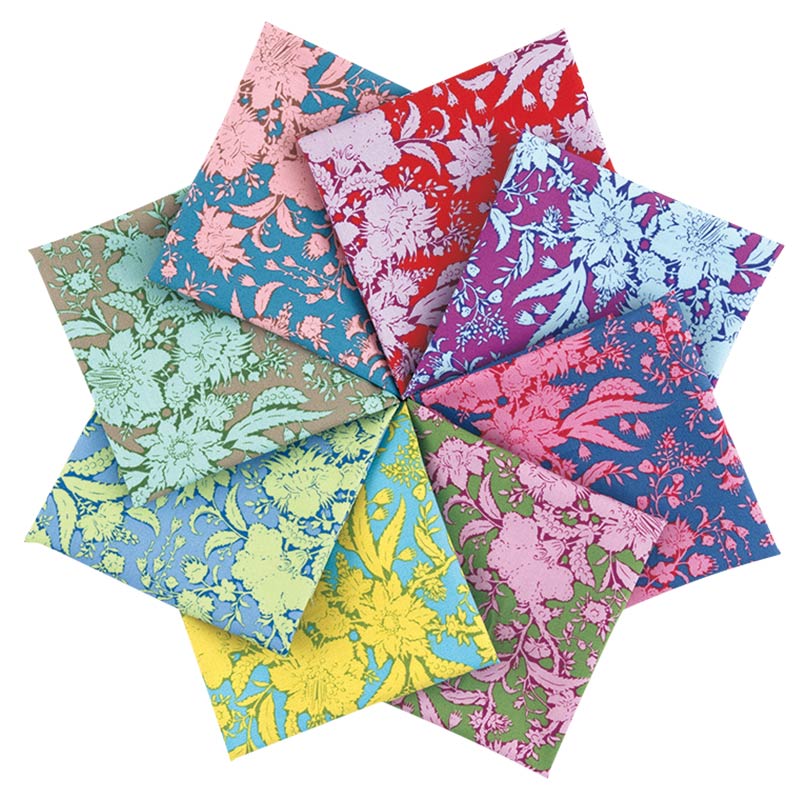 「ブルームス・ヴィレ 5枚セット」をはじめとするティルダコレクションと合わせやすい、カラフルな中柄フラワープリント。様々な色相の同柄を、小さめサイズのカットクロスでお届けします。