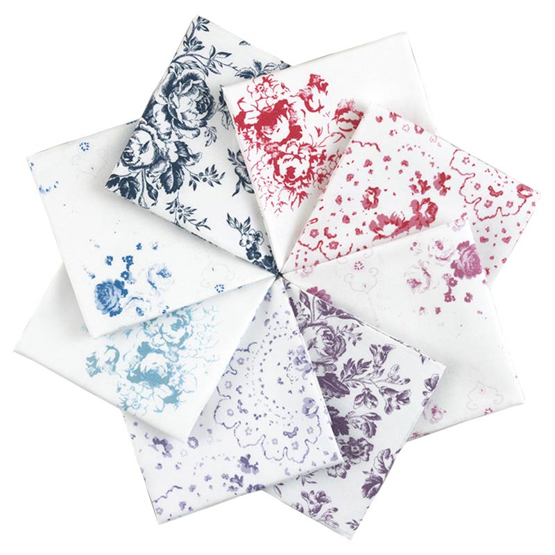 「CABBAGES & ROSES」 イギリスのライフスタイルブランド「キャベジズ&ローゼズ」の優美で長く愛されているファブリック。大柄なモチーフを、パッチワークでも使いやすいように縮小して綿100%の生地にプリントしました。エレガントなモチーフを単色でプリントしたロマンチックなセットです。