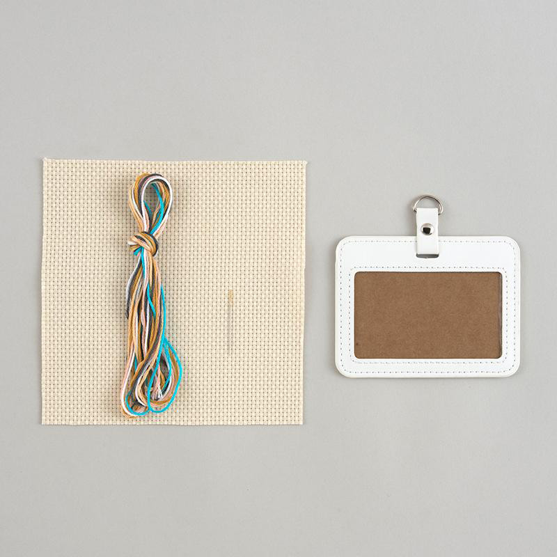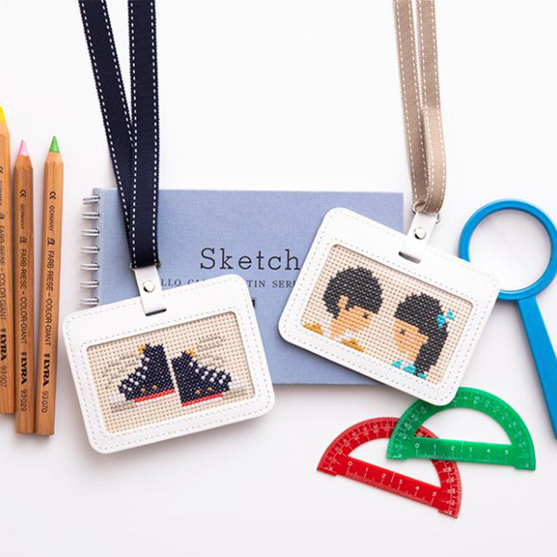 男の子と女の子が向き合っているちょっぴりレトロデザインのパスケースを作ります。自分で作ったパスケースはきっと大切な宝物に。