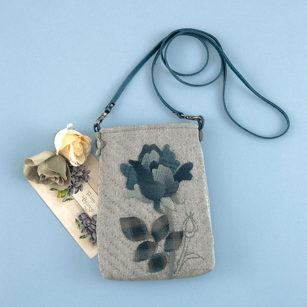 【キット作り方つき】1輪のバラのアップリケが、ナチュラルなベースに映えるポシェット。ちょっとした外出に重宝するサイズです。