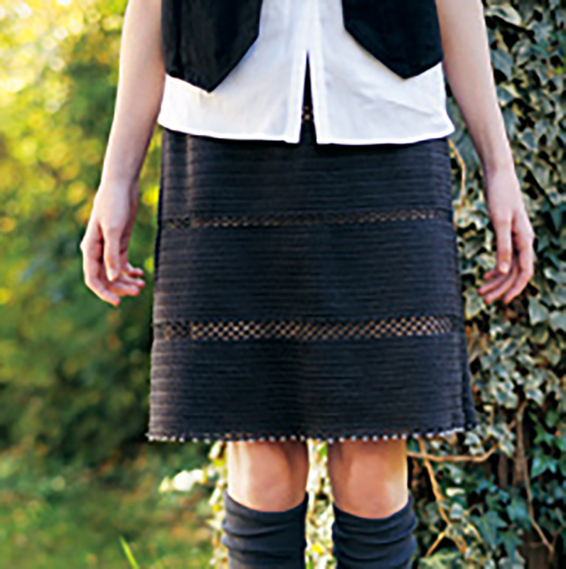 長編みを編む。ひたすら編む。はじめは編み目が揃わなかったけど、夢中で編んでるうちに、かなりうまくなってきた。まっすぐ編んでウエストをひもでしぼるだけでスカート、完成。
