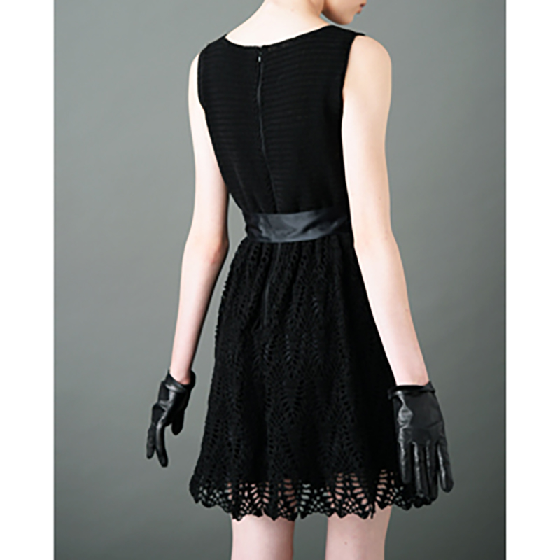 スカート部分は優雅なパイナップル編みを丹念に繰り返し、それを引き立たせるよう身頃は長編みと細編みのみで編みました。ウエストを絞った美しいシルエットは、あえてファスナー付けをすることでもたらされています。