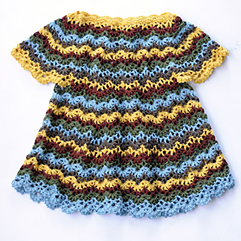 材料:パピー コットンコナ 青緑(63)105g、黄(52)100g=各3玉、緑(51)80g、赤茶(69)75g、茶色(70)70g=各2玉