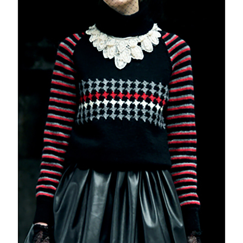 黒と赤のストライプもパンクファッションにはよく見られる色。そして千鳥格子は英国紳士のジャケットに使われる模様。伝統的な模様を使って、確立した社会体制を批判するバンドのファッションにして流行を作ったのは、英国ならでは。そんな、精神性を取り入れたプルオーバーです。