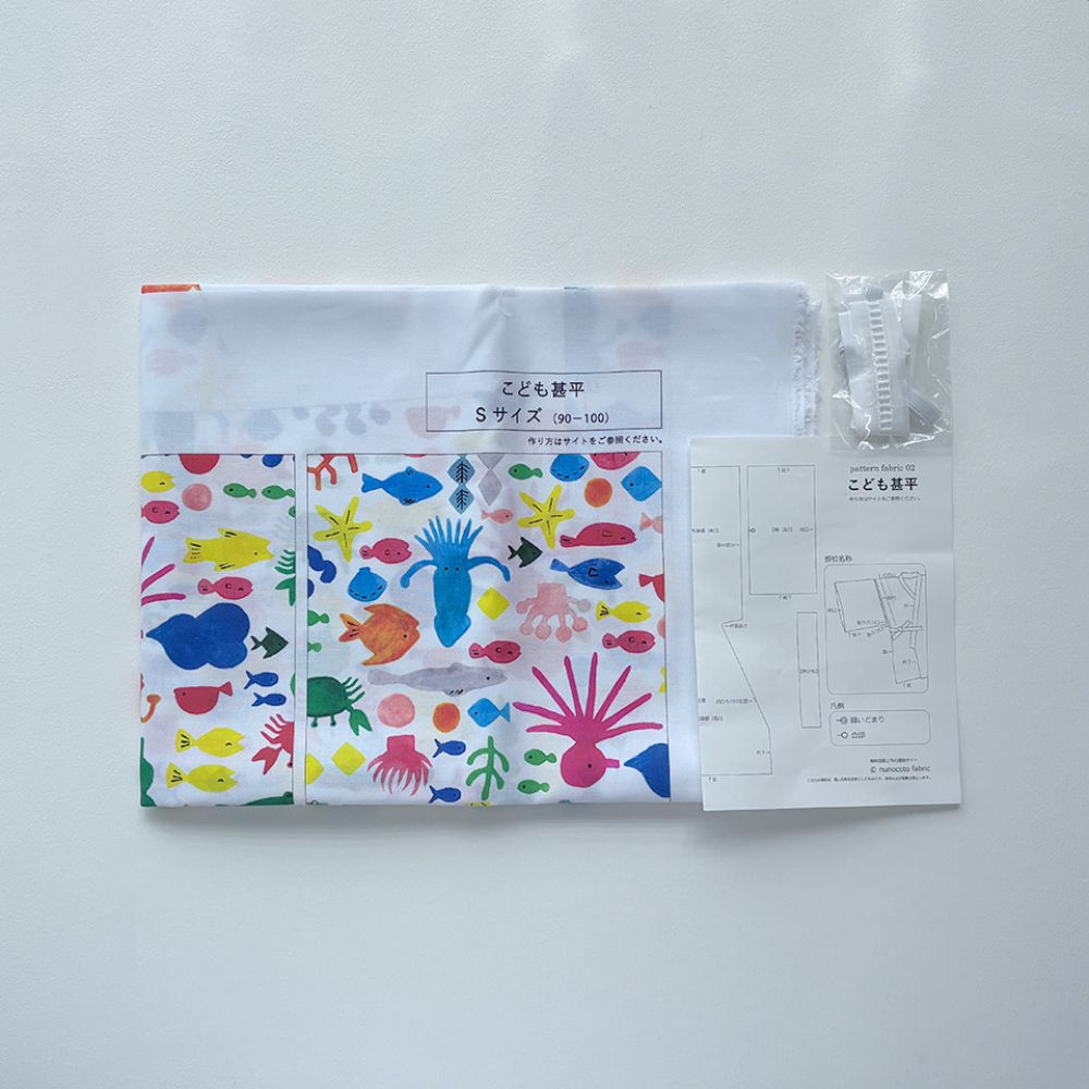 型紙がそのまま布にプリントされたnunocoto fabricさんの「パターンファブリック」の、こども用甚平です。