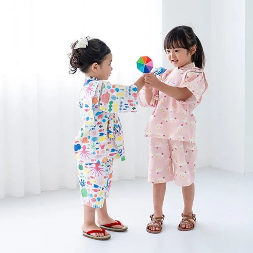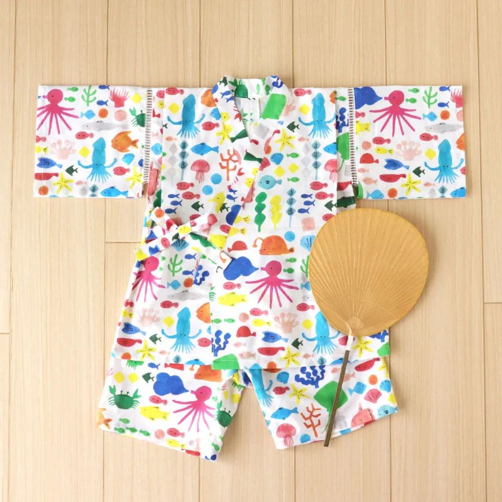 テキスタイル(布)の魅力がいっぱいの可愛いこども甚平は、夏祭りや花火大会に活躍してくれそう!暑い日のパジャマにも便利な甚平。