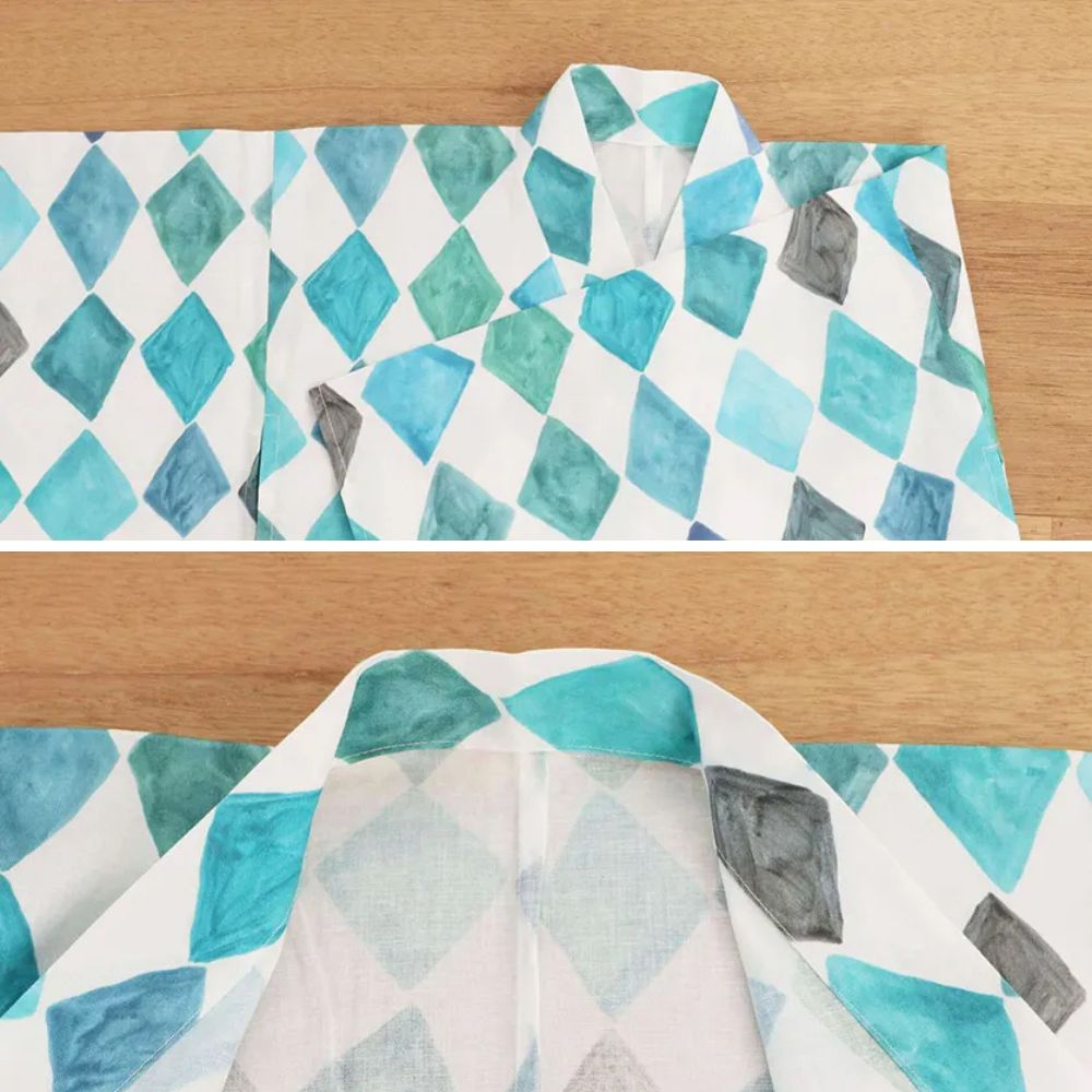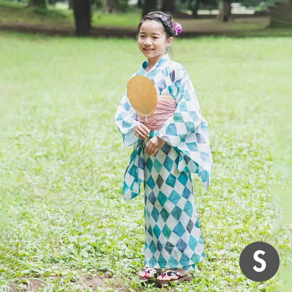 ぱっと目を惹く、涼し気で華やかなこども用浴衣。 おしゃれなテキスタイルで作る、とっておきの可愛い一着になってくれますように。