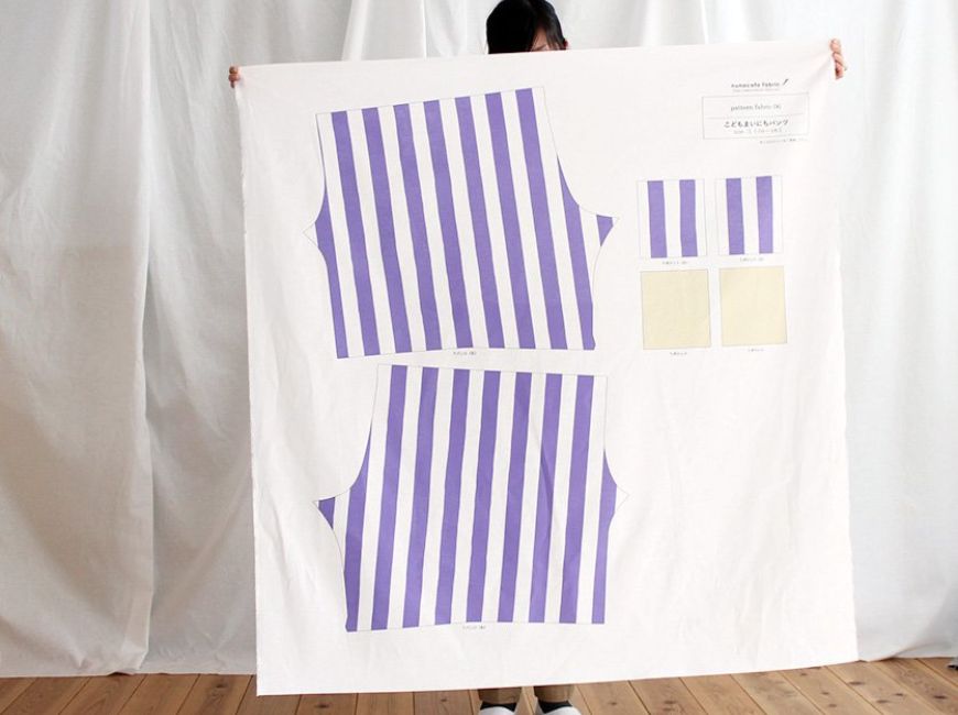 nunocoto fabric パターンファブリック こどもまいにちパンツ[ベーシックストライプ 桔梗色] Sサイズ(110~120cm)型紙がそのまま布にプリントされた「パターンファブリック」。nunocoto fabricさんのサイトで作り方動画をご覧いただけます。1/13まで開催!年末年始セール2,376円(税込)2,640円(税込)