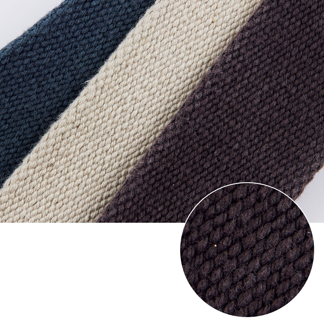 ヴィンテージ風の厚口綿テープ。約3mmのしっかりした厚みが手にソフトな感触で、バッグの持ち手におすすめです。